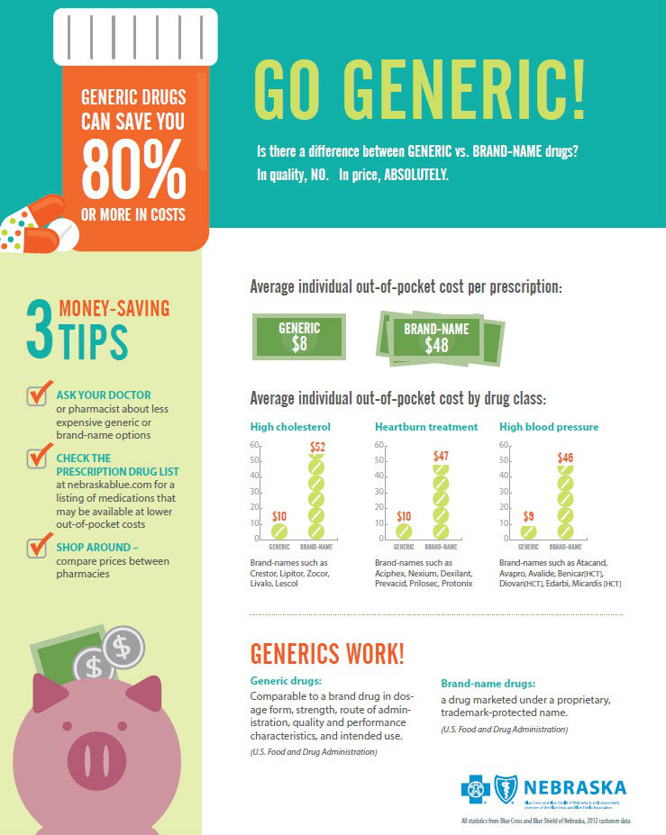 Over-the-Counter Medications: The FDA requires that name brand-medications like pain killers and allergy pills, along with their generic brands,  contain the exact same active ingredients. You can always compare labels and talk to your doctor or pharmacist to get their recommendations, but you can save nearly 80% on the products you stock your medicine cabinet with by going generic!