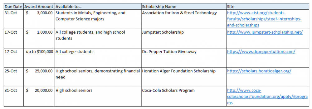 Here are 5 scholarships ending in the month of October – there are plenty more available at the Department of Labor scholarship site!