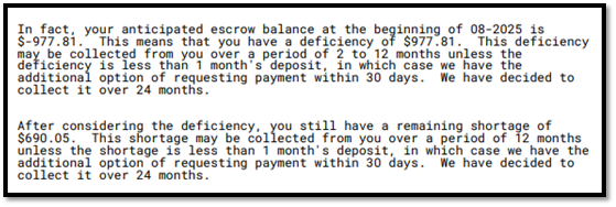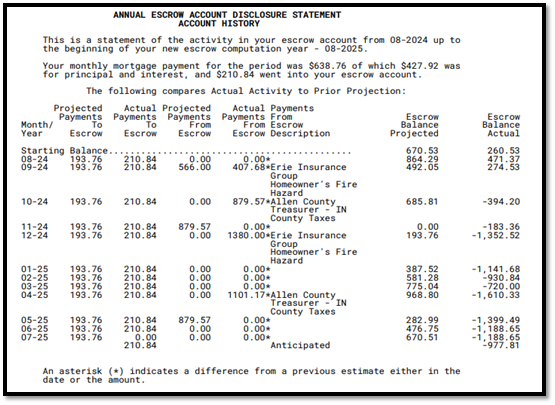 - Deficiency: This means your escrow currently has a negative balance.